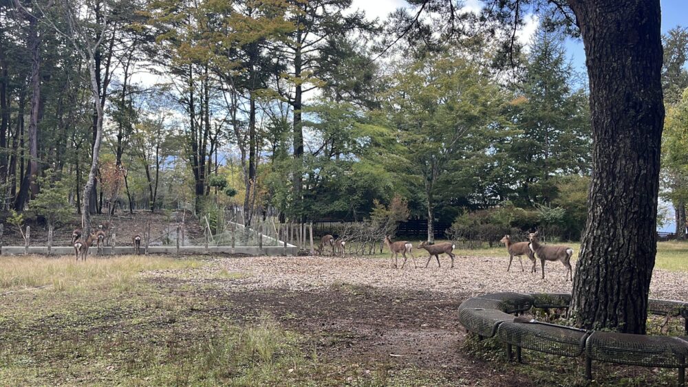 なんと、キャンプ場内に野生の鹿がいました。可愛い! 私に気がつくと湖畔の方へ逃げて行きました。山から降りてきた感じ。