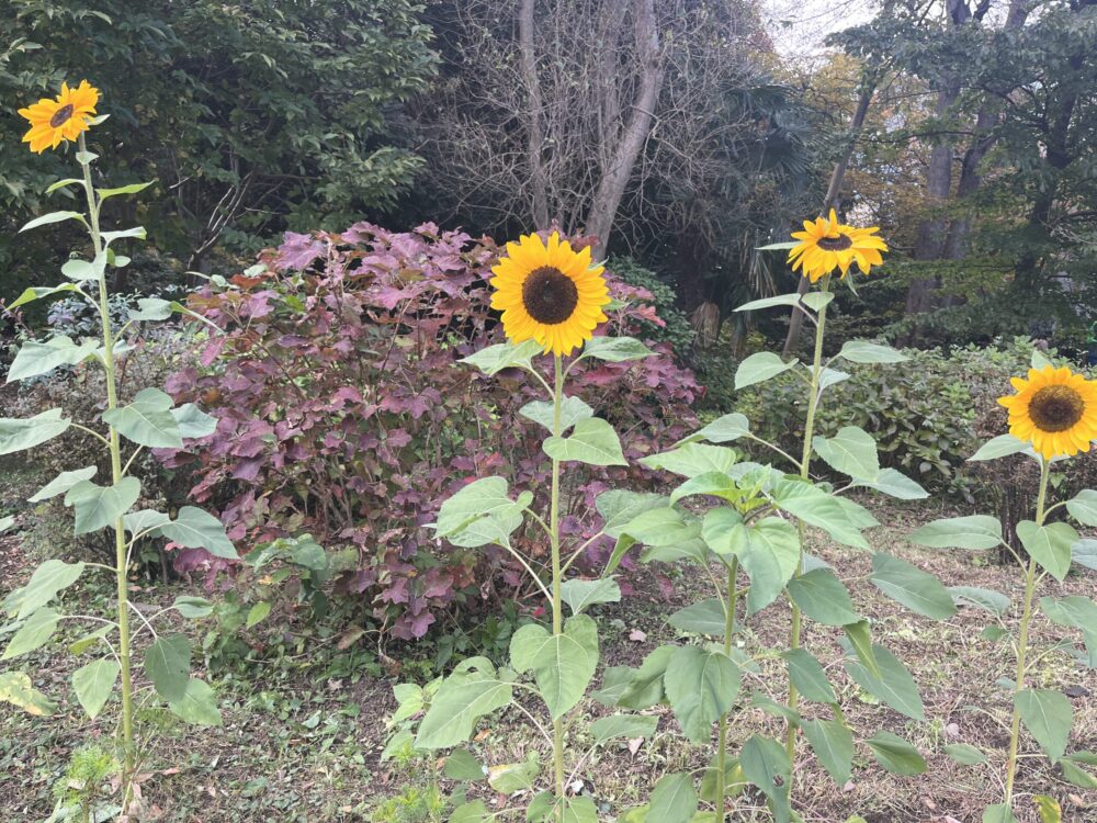 もう11月なのにひまわりが咲いていました。そういう品種なのかな。