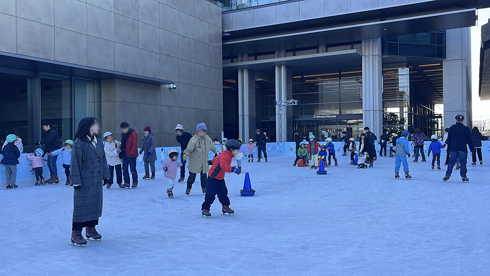 スケートリンクには子供やその保護者、カップルや友達で来ている人たちが滑っていました。うまく滑れてない人の方が多くて転んだりもしています。だけど、見ているとみんな楽しそうな表情です。状況的には寒いし硬いスケート靴を履いて氷の上を滑るという不安定な動きで大変だと思うのですが、なぜだかみんな笑顔です。