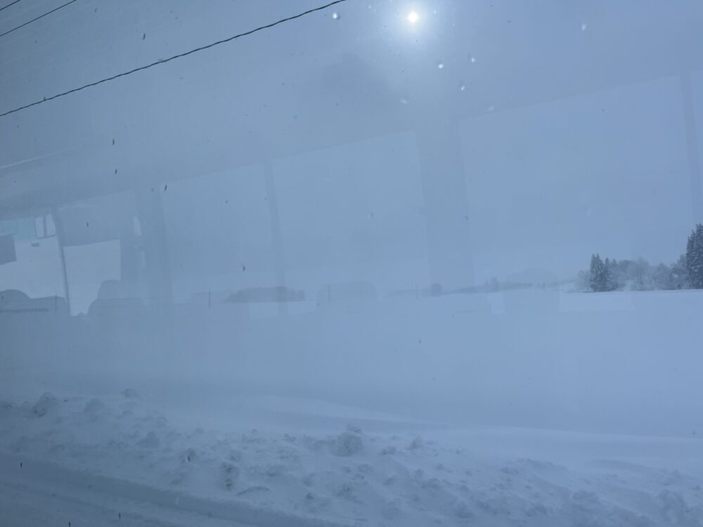 この日はとても吹雪いていて、バスが出発してから数十分で反対車線にクラッシュした車が視界に入りました。緊張感が走りましたが、運転手さんの運転がとても丁寧で私は最後まで怖い思いをすることなく目的地に到着できました。